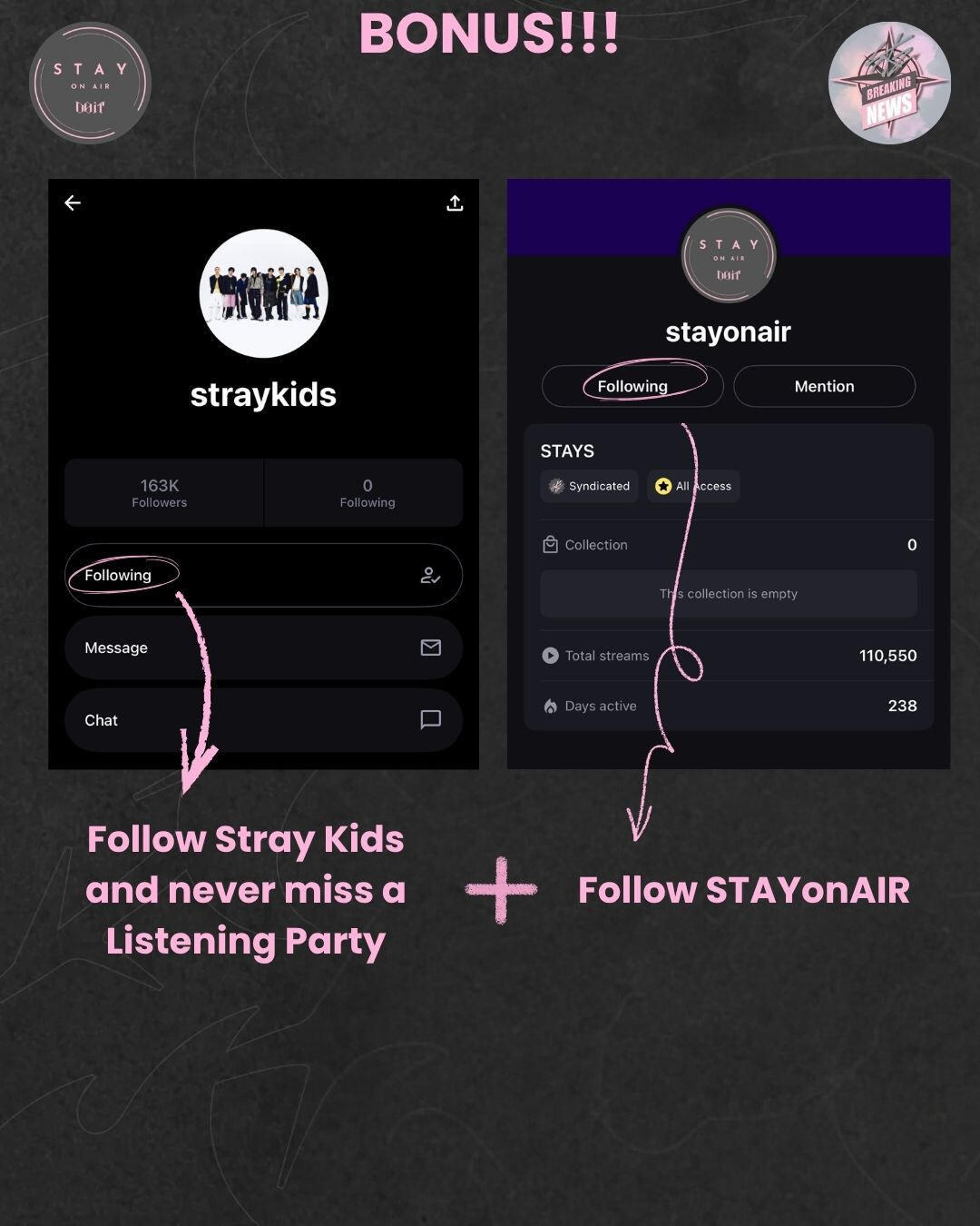 No songs by competing/charting artists - We won't be playing any songs from competing artists, whether they are K-pop or non-K-pop. If that artist is currently charting or if they have a newly released album. If the song you are requesting is currently charting on major streaming charts such as Billboard, Spotify or is a newly released song, we will not play the request. Try to request non-charting songs or song that are at least 1 year old. This helps us support Stray Kids and their streaming numbers, which we know is super important to all of you!