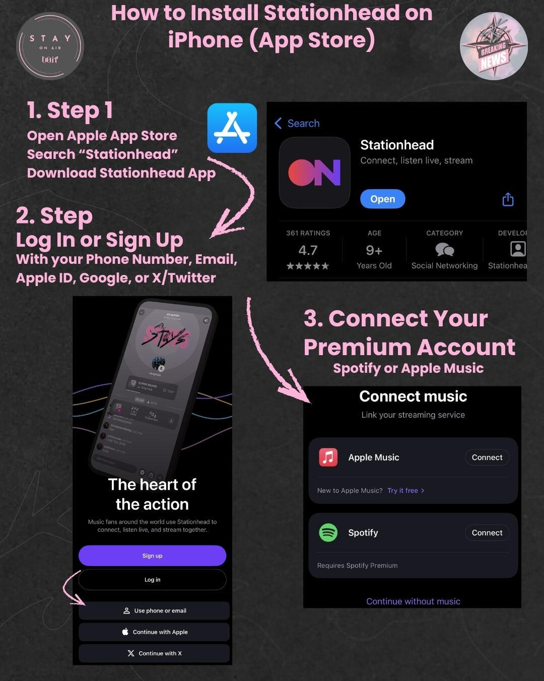 Create a Stationhead account and connect your streaming service (Apple Music or Spotify Premium)